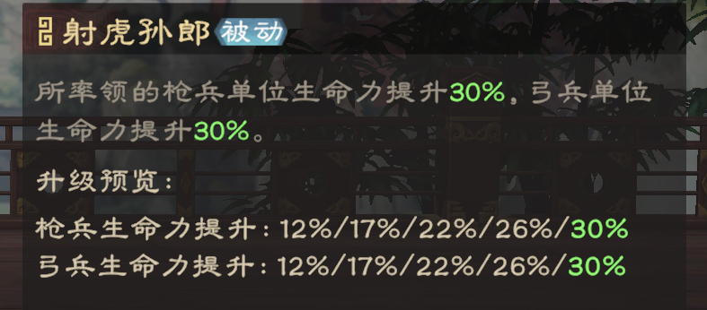 每个武将都有擅长率领的兵种,配置擅长兵种可提升战力系数。比如我们“孙权+孙尚香”的普攻流配置,就可以选择前排枪兵+后排弓兵的配置。