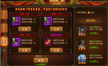 击杀野外boss可以获得龙魂,通过珍宝阁兑换相应的青龙装备