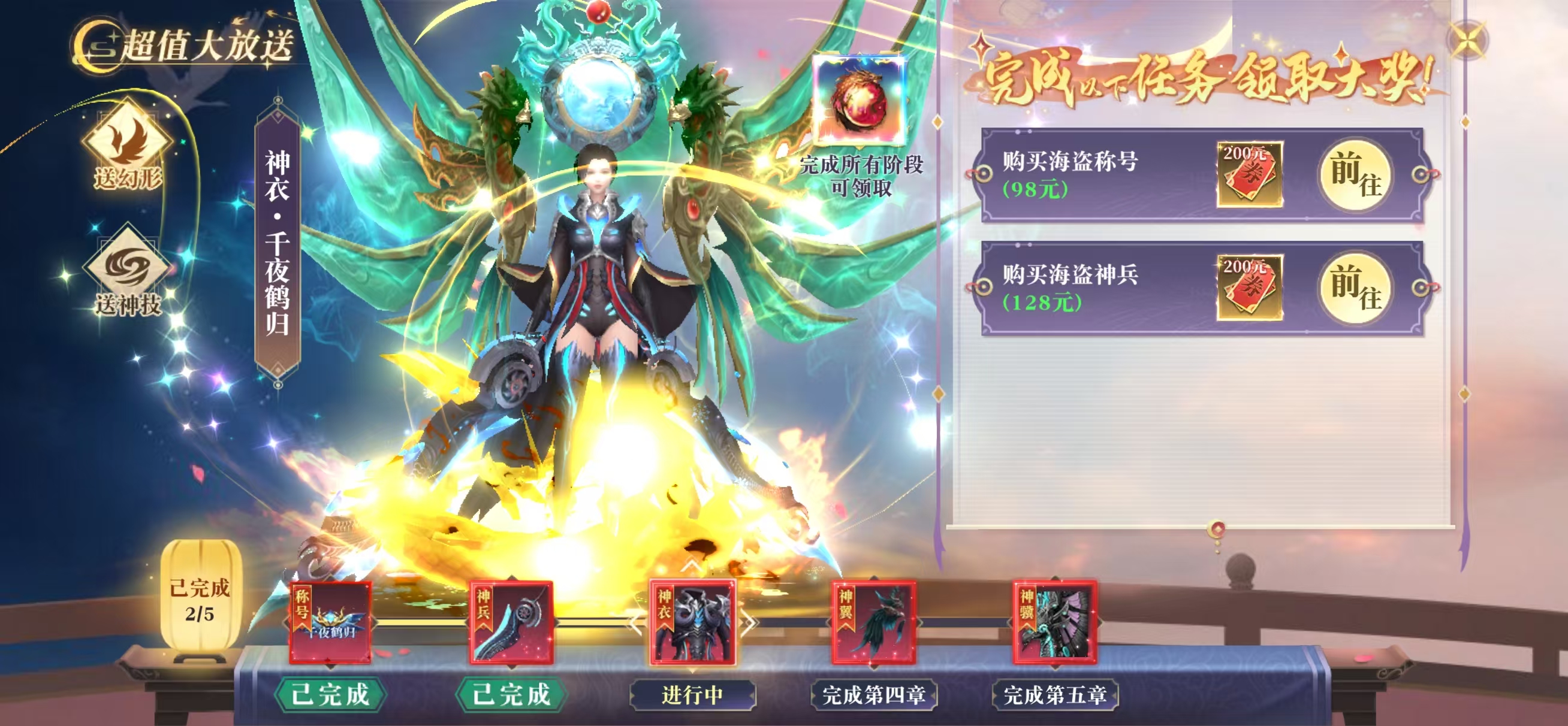 新手核心储值,付费必参与活动,额外赠送称号、神兵等超多好物。