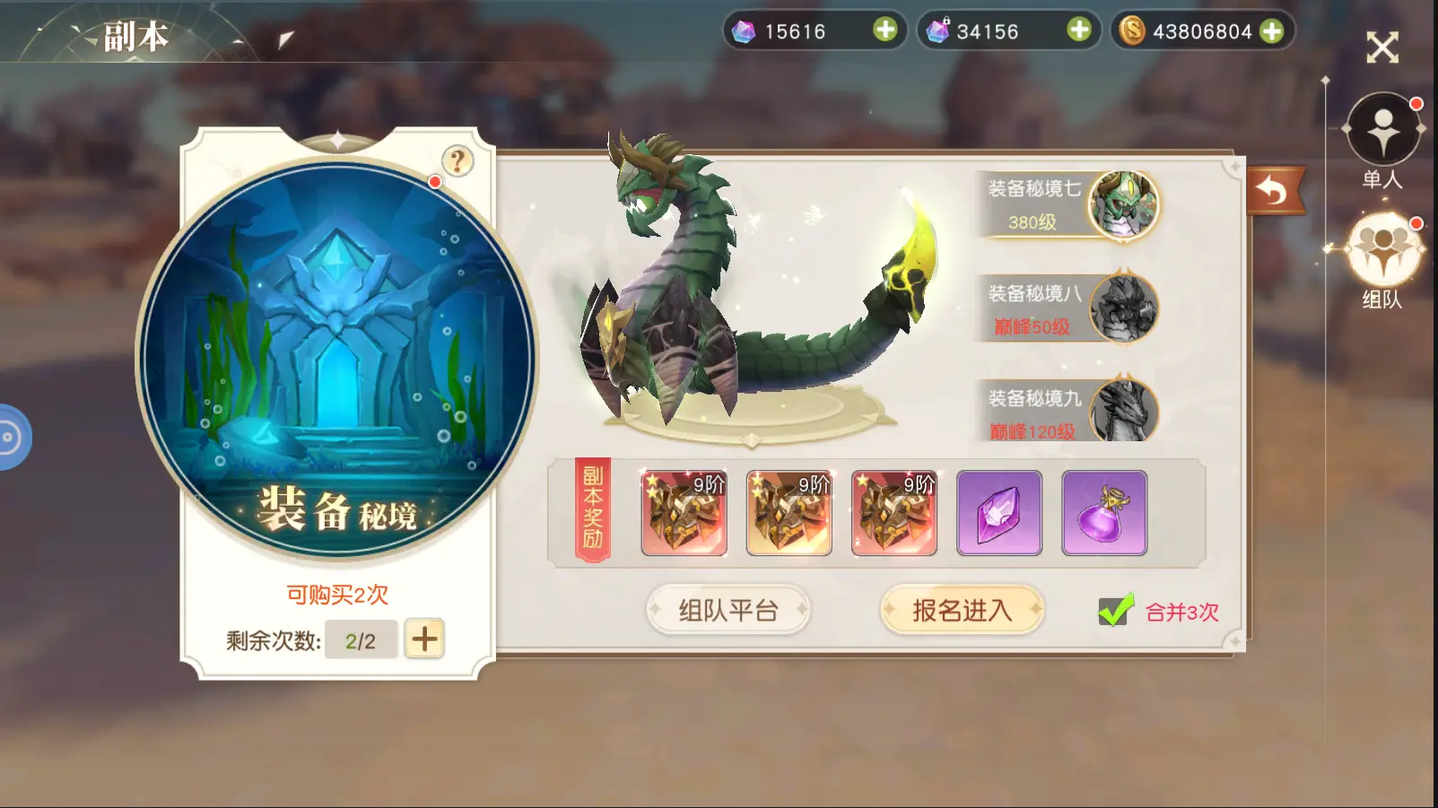 装备秘境:通关能获得海量经验、极品装备和强化材料。