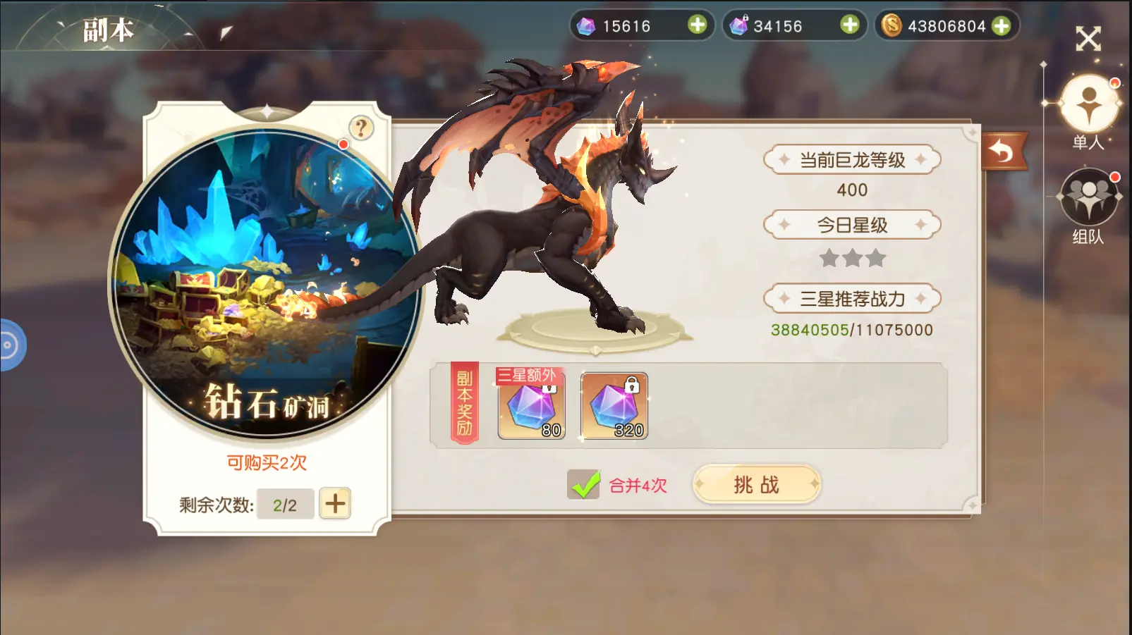 通关彩钻矿洞可获得海量绑定钻石,3星通关还有大量额外奖励。