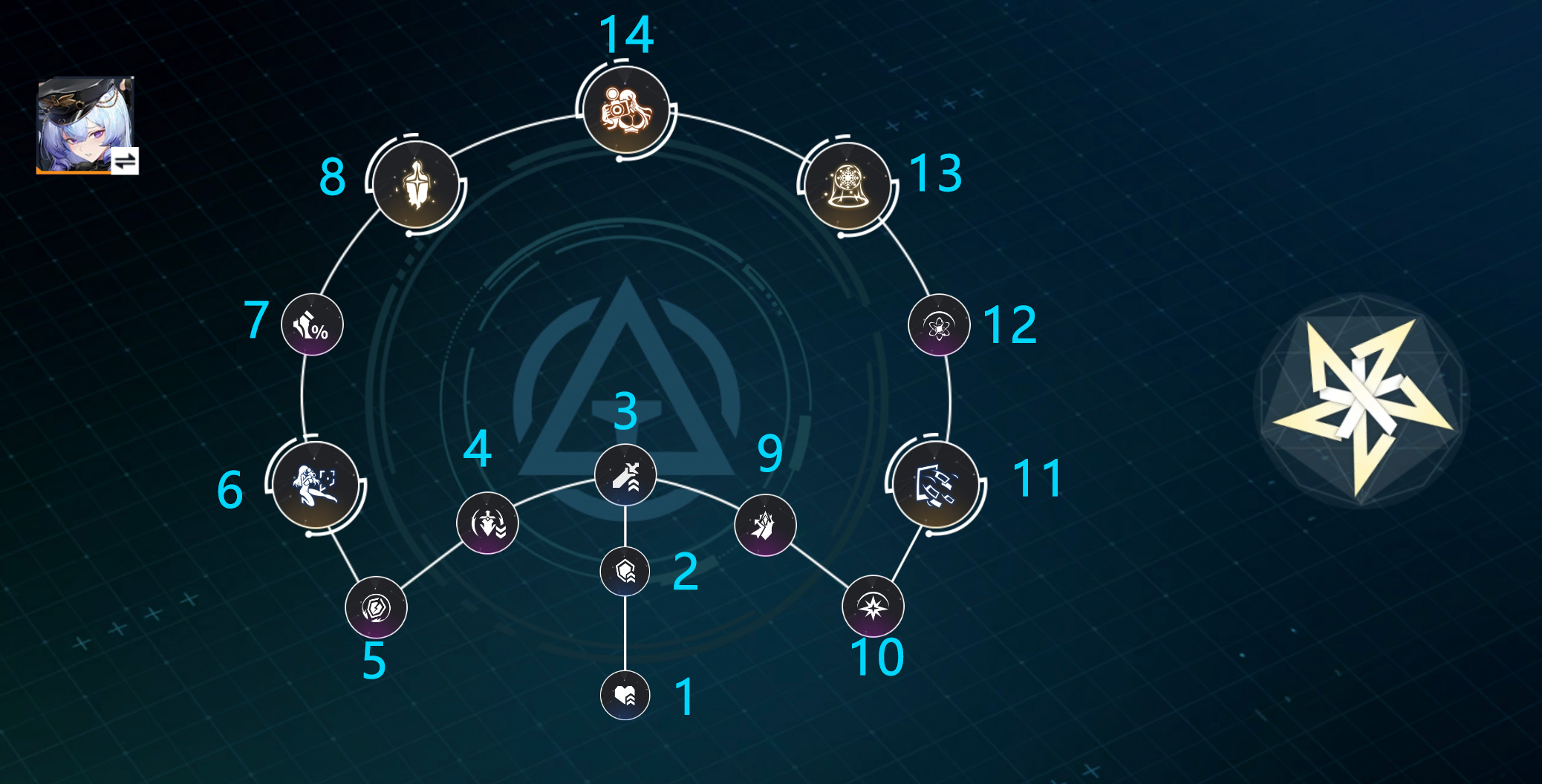 回合开始时,瞳光会获得1层底片,上限6层。每层提升速度8%,伤害减免14%,效果最高叠加4层。