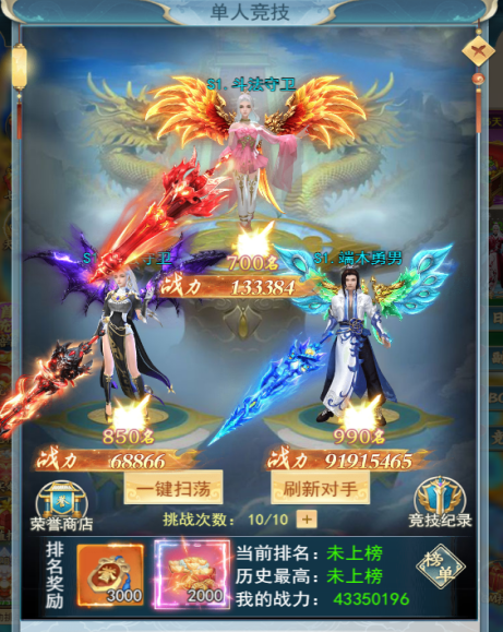 10、挑战神魔之塔可以获得装备、功法的寻宝钥匙;挑战修仙之路可获得大量元宝和神器,还可以与其他仙友在竞技场PK,究竟谁才是最强仙王
